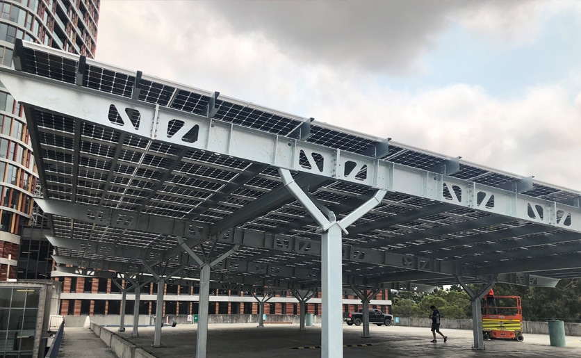 Our solar shade systems effectively generate renewable energy that can be used, banked, or linked to electric car charging stations. Offering four structural variations, our solar structures are suitable in any open space where power and shade is a benefit and can be customised to fit environments such as shopping centres, hospitals, schools and sports grounds and more.