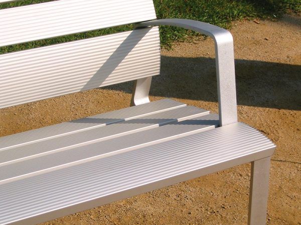 Whereas the Neoromántico represents the modernisation of the classic park bench with wooden slats and steel frame, the Neoliviano captures the same timeless elegance, adds an armrest, and distils it for the 21st century. Comprising a 100% recyclable aluminium frame and available with timber or aluminium slats and in a variety of lengths, it retains an uncompromising clarity of form.