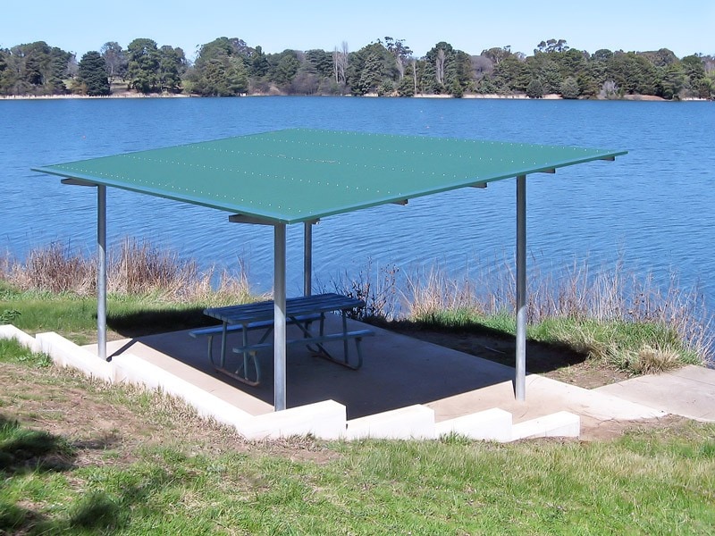 Strong, anti-vandal park shelters with a contemporary touch, steel skillion shelters stand the test of time.