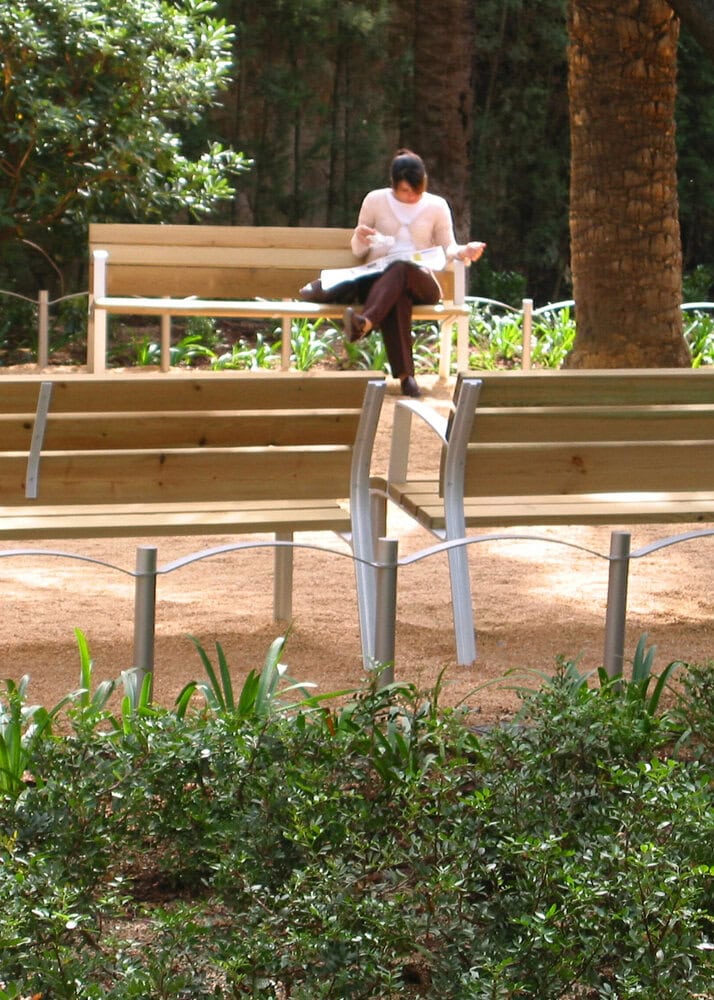The Robert garden edging parking stopper was created with the intention of defining garden areas as separate from the flow of pedestrians. Its formal solution allows the structure to adapt to curved lines, aligned with the separation perimeter.